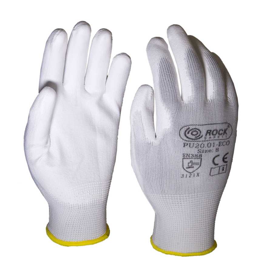 • PU kaplamalı avuç içi beyaz örme eldiven