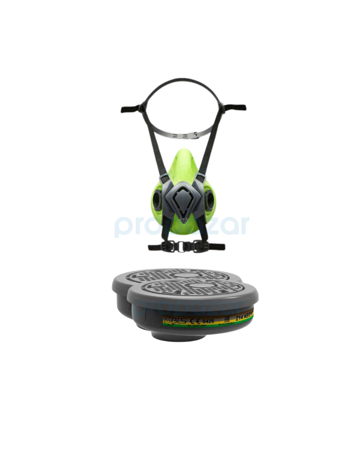 BLS 4000 Yarım Yüz Maskesi ve BLS 214 ABEK1 gaz ve buhar filtresi kombinasyonu, farklı tipte tehlikeli gazlara karşı çok yönlü ve yüksek seviyede solunum koruması sunan profesyonel bir settir.