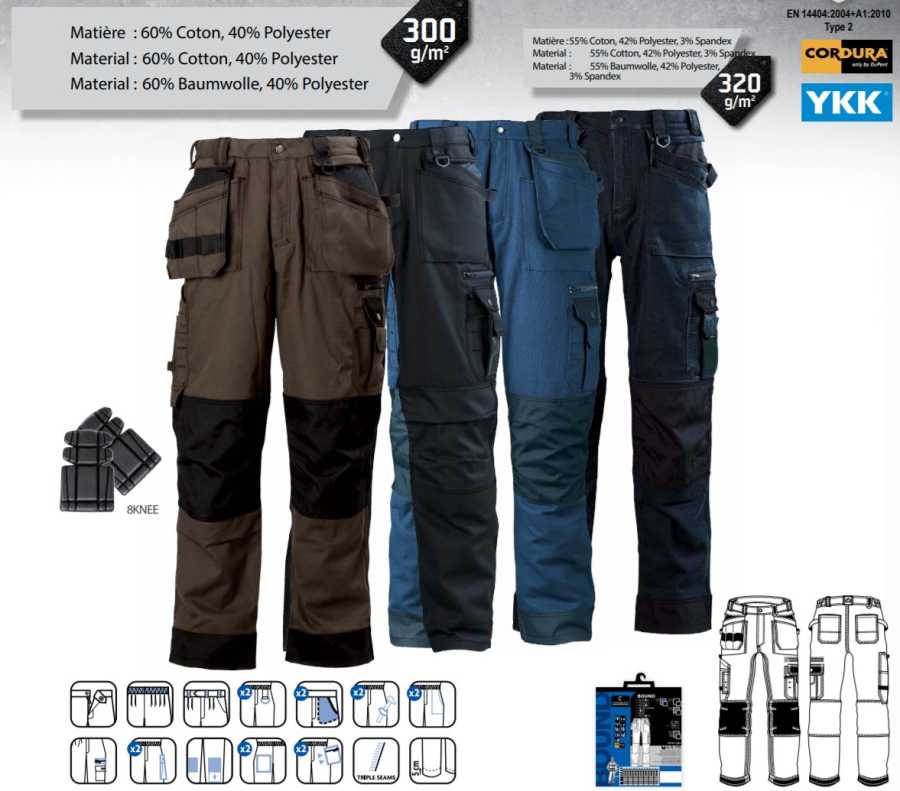 Cepler : 2 anahtarlık halkası , 2 italyan cebi, 2 ön cep, 2 çekiç tutacağı, 1 fermuarlı cep, 1 çok bölmeli yan cep, 1 çok bölmeli ve alet taşıma kemerli alet cebi, Cordura dan 2 dizlik cebi, 2 sırt cebi, Cordura dan çok bölmeli ve alet taşıma kemerli takılıp çıkarılabilir 2 alet cebi