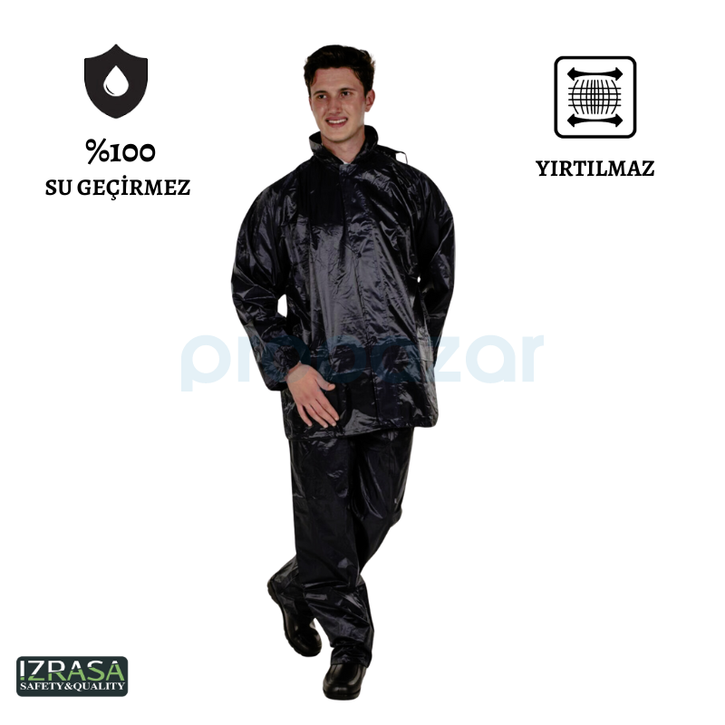 Izrasa SI-01 Lacivert, yağışlı ve rüzgârlı hava koşullarında güvenilir koruma sunan imperteks kumaştan üretilmiş ceket + pantolon setidir. 190 g/m² gramajlı %100 polyester dış yüzey, fermuar + çıtçıt kapama, lastikli manşet ve gizli kapüşon ile sahada konfor ve performansı bir araya getirir. Ürün, özel taşıma çantası ile pratik şekilde saklanabilir. Renk: Lacivert.