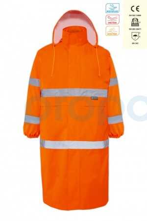 Gelince Haber VerOlympus Hi-Vis Raincoat (16102), uzun boy pardösü tip tasarımıyla yağışlı ve rüzgârlı havalarda saha çalışanlarına tam koruma sunar. Hi-Vis Turuncu rengi ve reflektif bantları sayesinde düşük ışıkta maksimum görünürlük sağlarken, su geçirmez dış yüzey ve kapüşonlu yapısı gün boyu kuru ve güvenli çalışma imkânı verir.