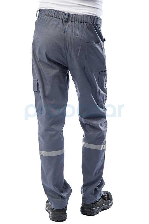 Paçalardaki reflektör şeritler düşük ışık koşullarında fark edilirliği destekler.