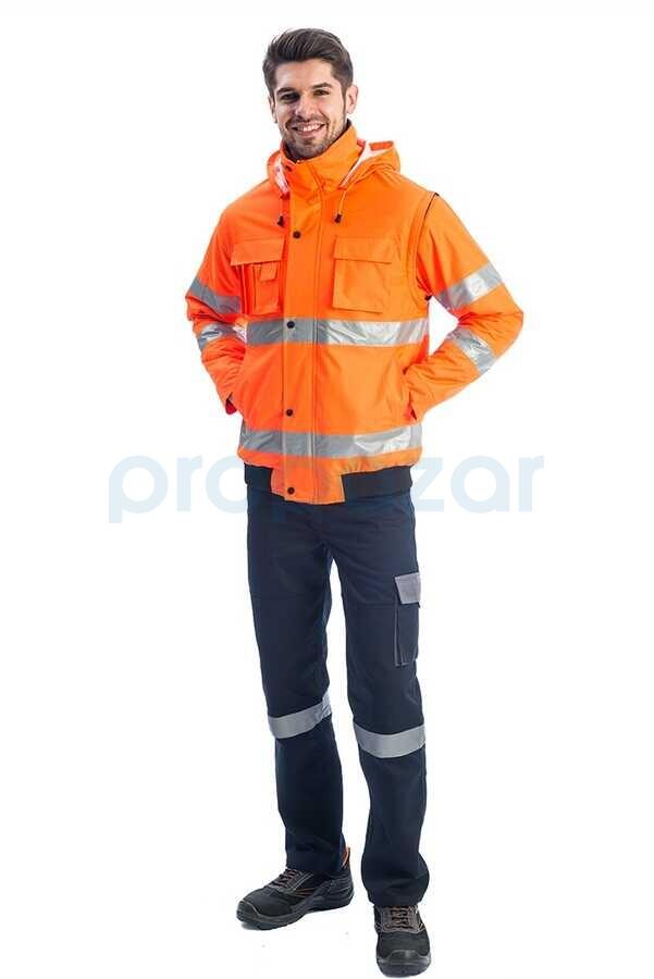 ​• Kollar ve beden kısmını tümü ile saran iki sıra reflektif bantlar