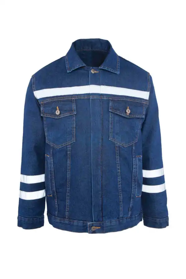 🛡️ Kapitone (elyaf dolgulu) astar ve dayanıklı denim dış yüzey ile soğuk hava koşullarında sıcaklık, sahada uzun ömür ve konfor sunar. Ön fermuar üzerine supat (kapak) ve çakma düğme/kapama detaylarıyla güvenli kullanım sağlar.