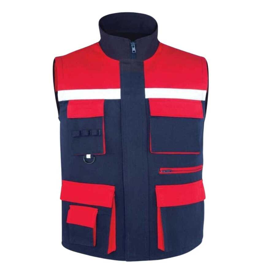 Myform 9137 Multi Çok Cepli İş Yeleği Lacivert Kırmızı