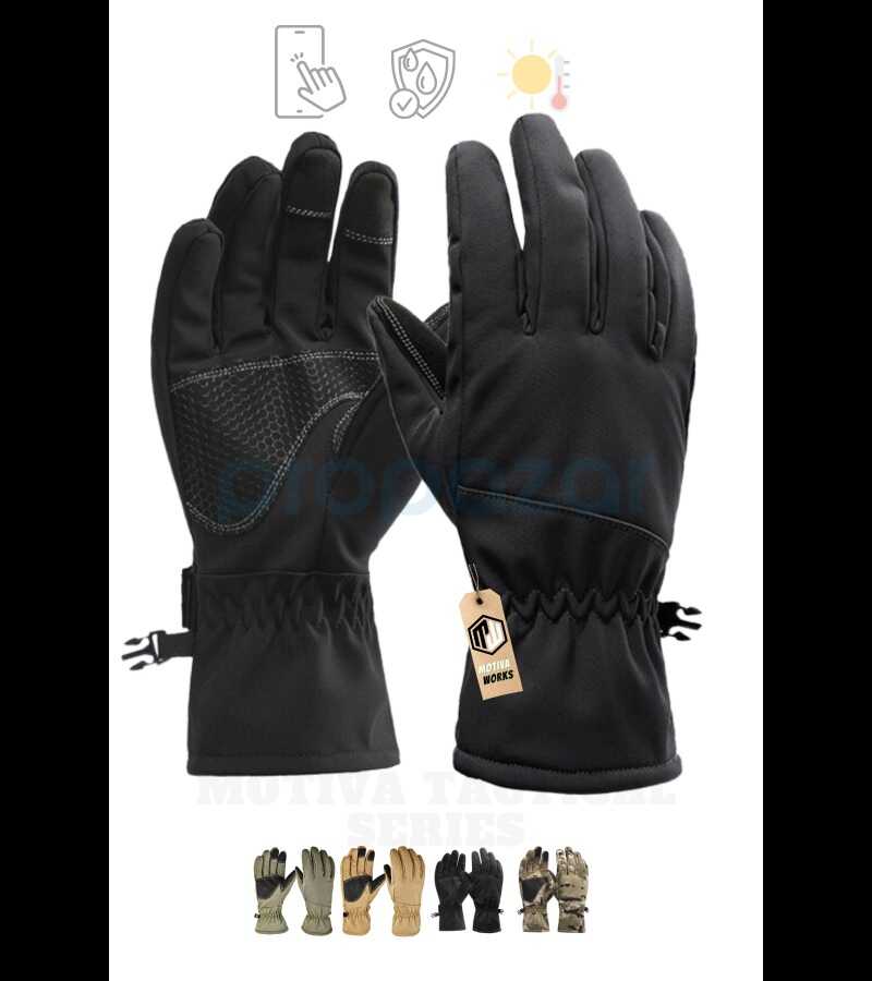 Su Geçirmez Softshell Siyah Motosiklet Taktik Askeri Spor Kışlık Kar Balıkçı Eldiveni