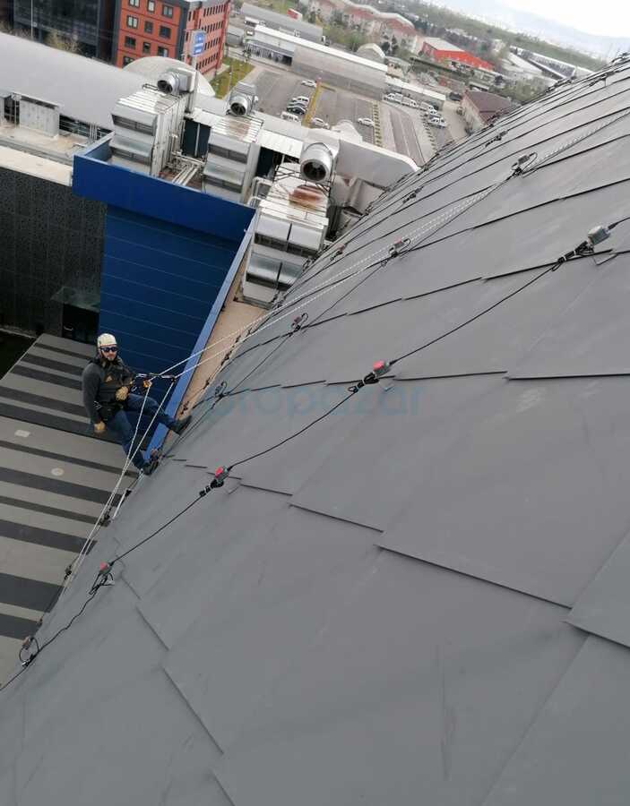 Yatay yaşam hattı, geniş alanlarda yatay hareket imkanı sunarken, dikey yaşam hattı merdiven ve dikey geçişlerde maksimum güvenlik sağlar. Projeye özel mühendislik hesaplamaları ile sistem kurulumu yapılır.